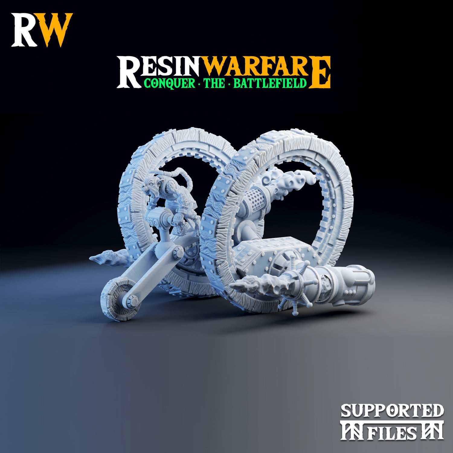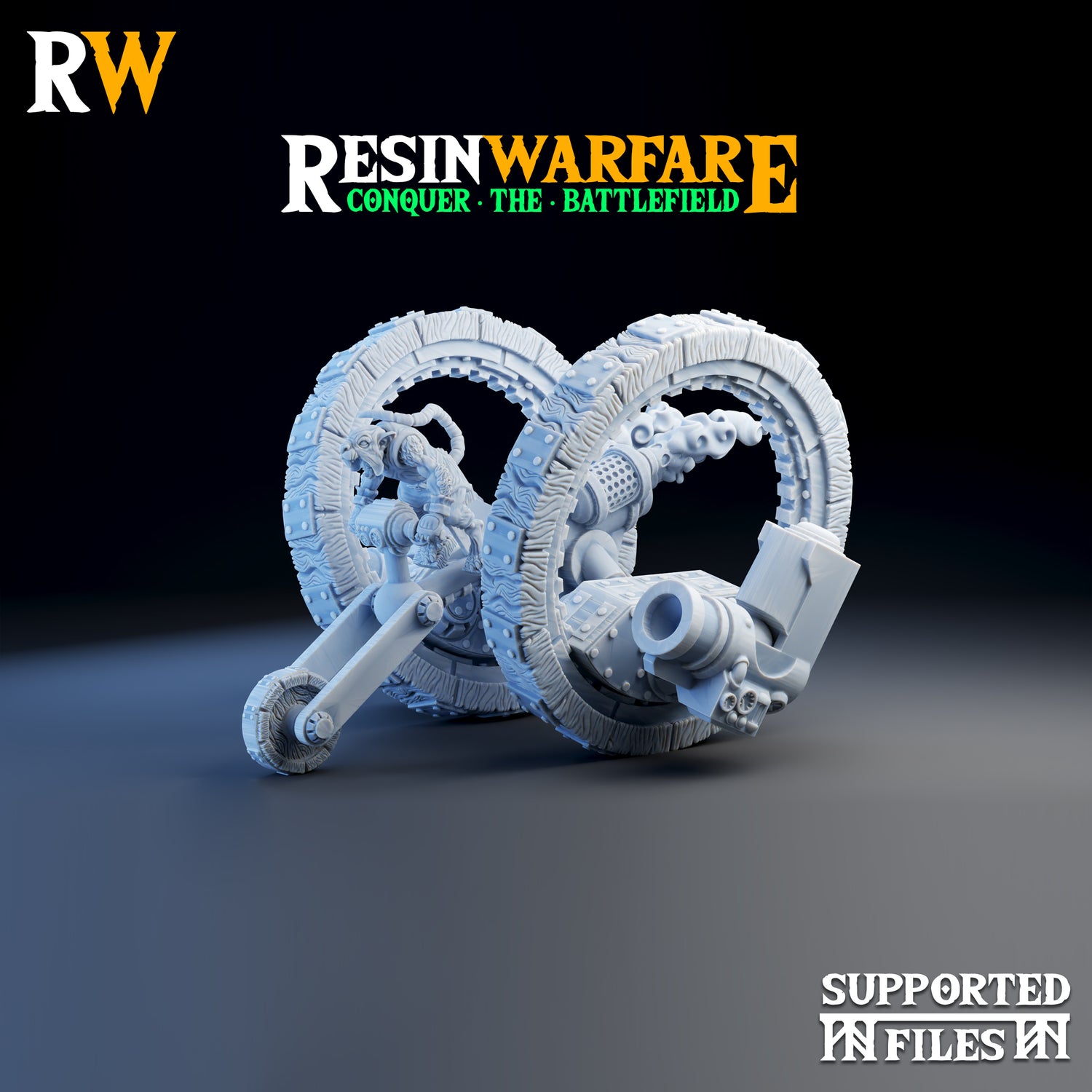 This is a resin 3D printed Battle Engine by Resin Warfare, available with a choice of cannons or mortars.