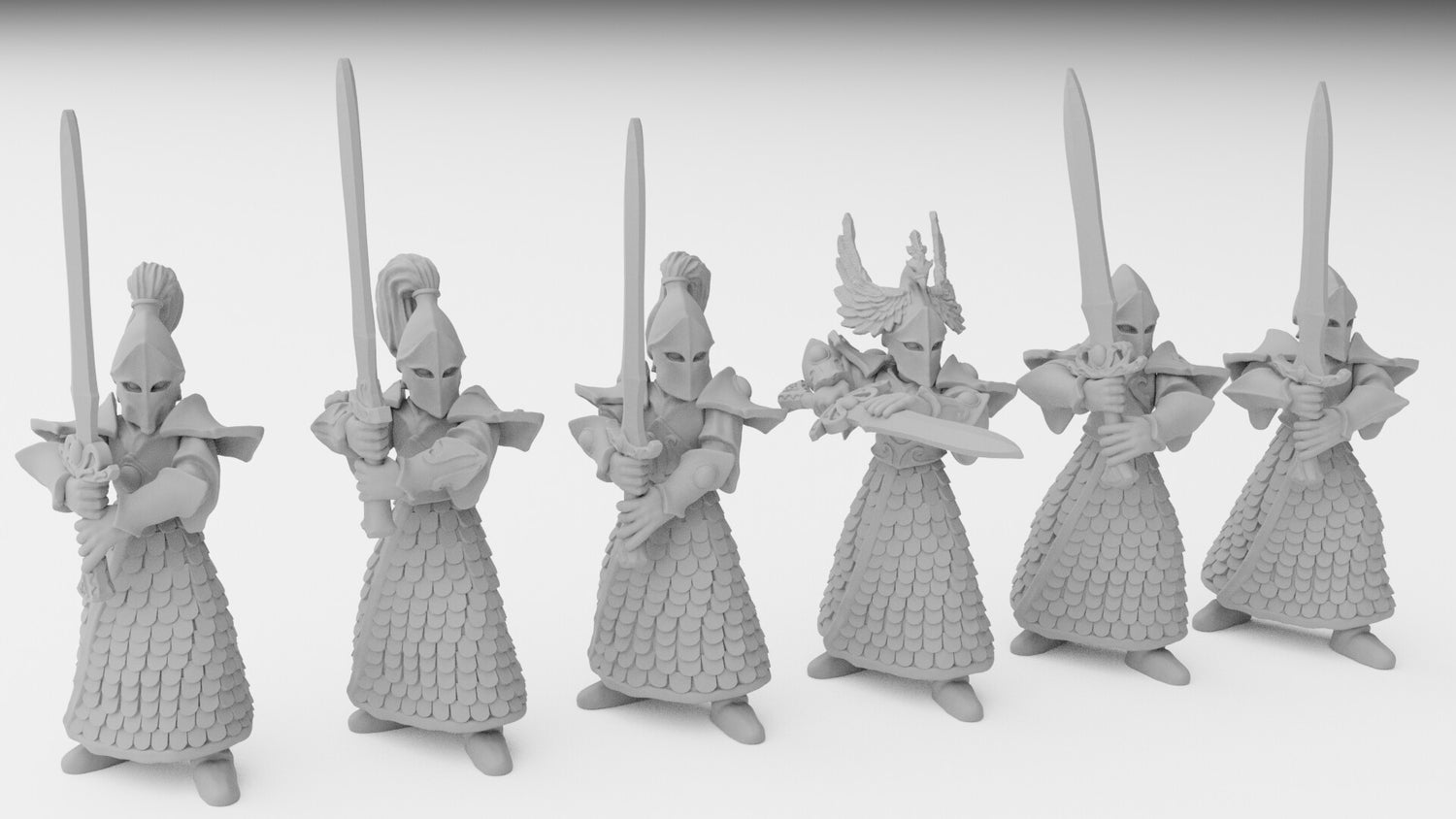 This is a set of resin 3D printed Elite Guard with Greatswords by Ilhadiel.