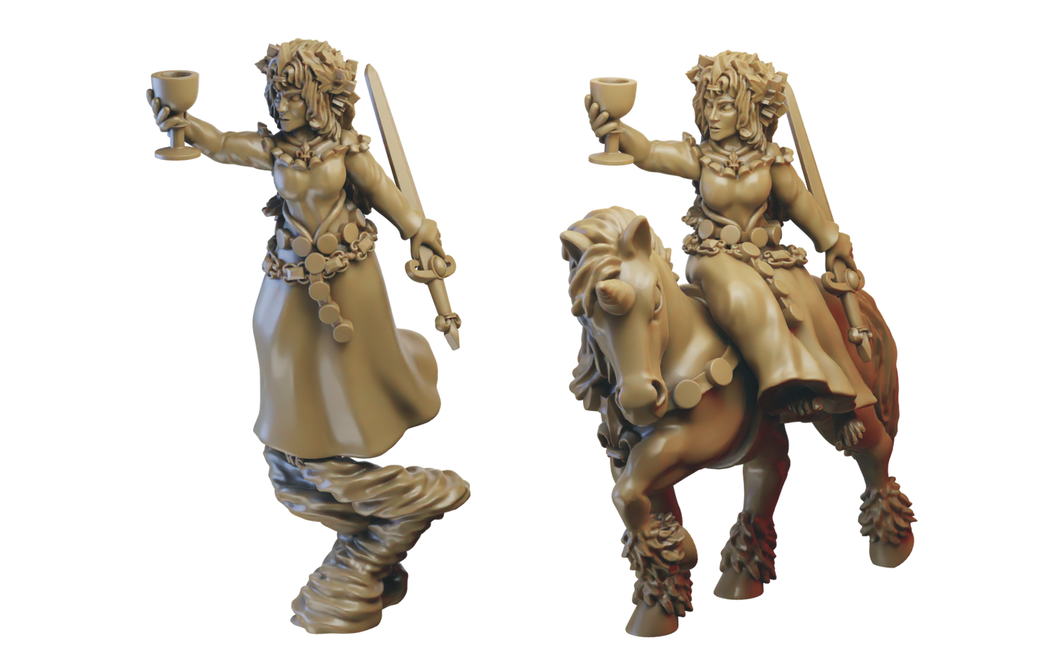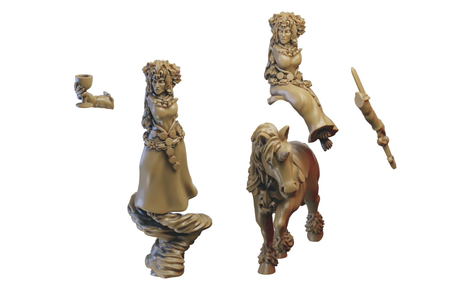 This is a resin 3D printed Prophetess of the Ancients by Ilhadiel. This model is available on foot or mounted on a unicorn.