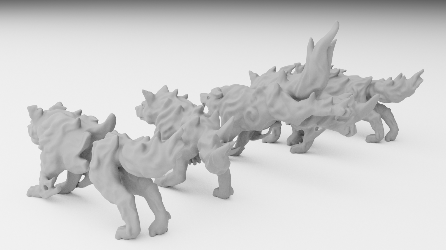 This is a set of resin 3D printed Dark Elf Shadow Hounds by Ilhadiel.