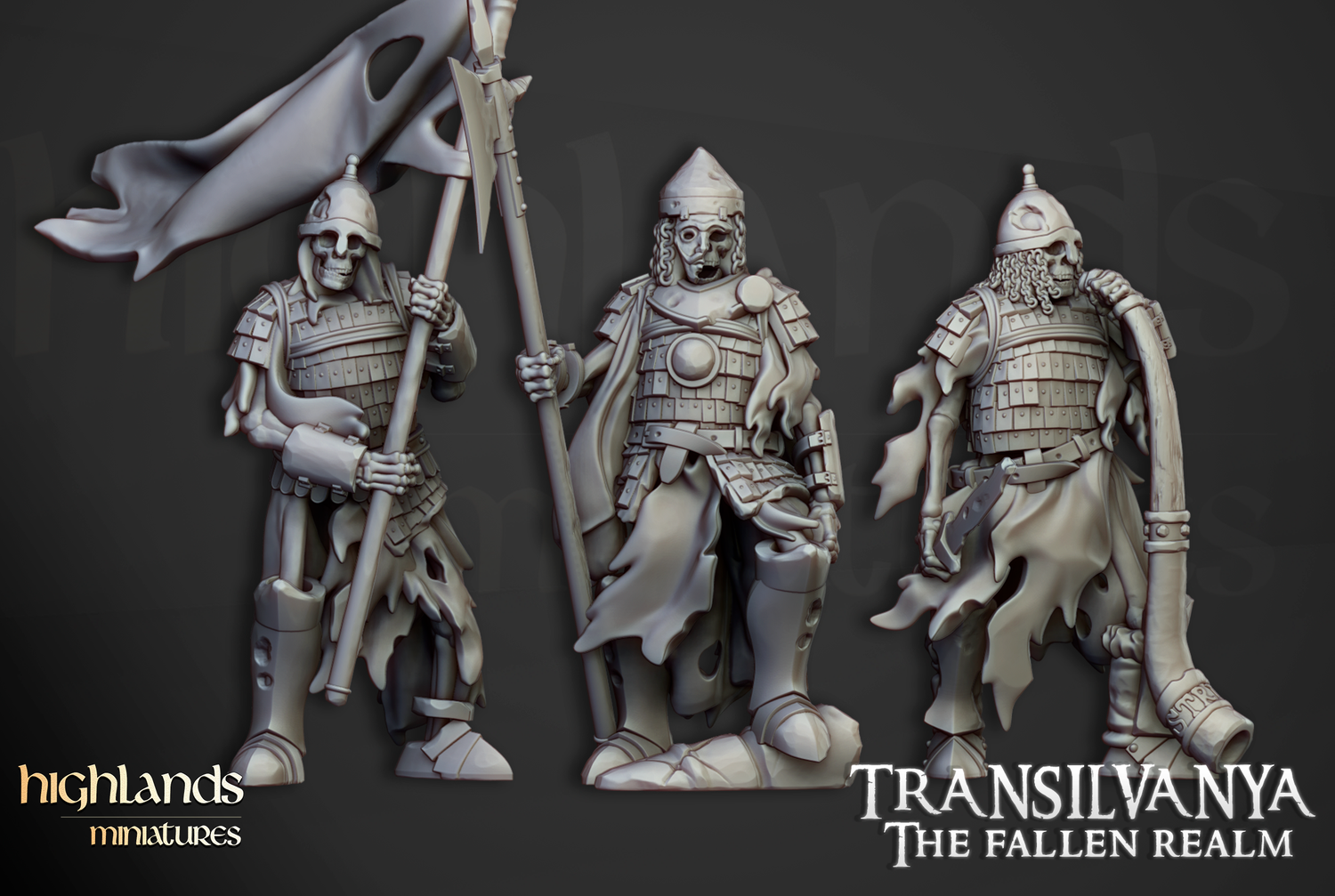 This is a set of resin 3D printed Skeleton Boyar Guard by Highlands Miniatures.