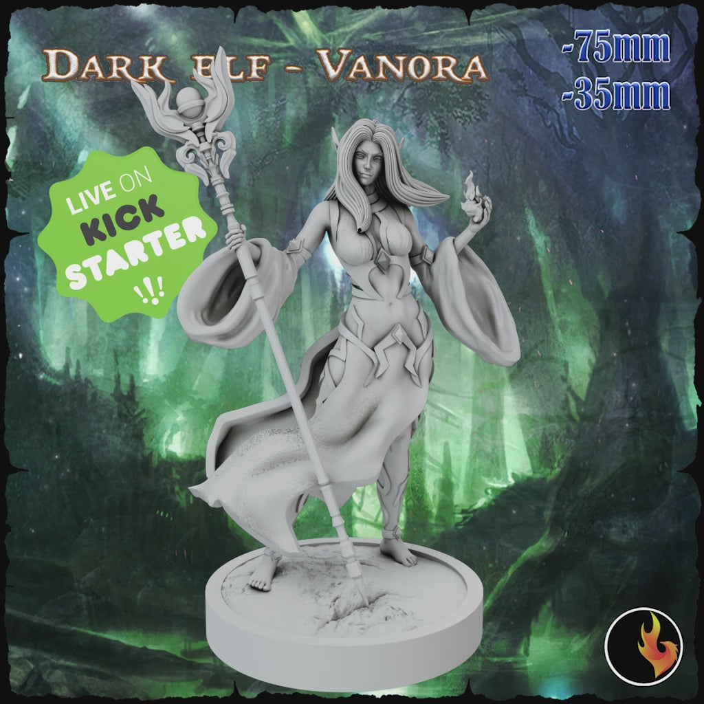 This is a resin 3D printed Dark Elf Sorceress by RKS3D.