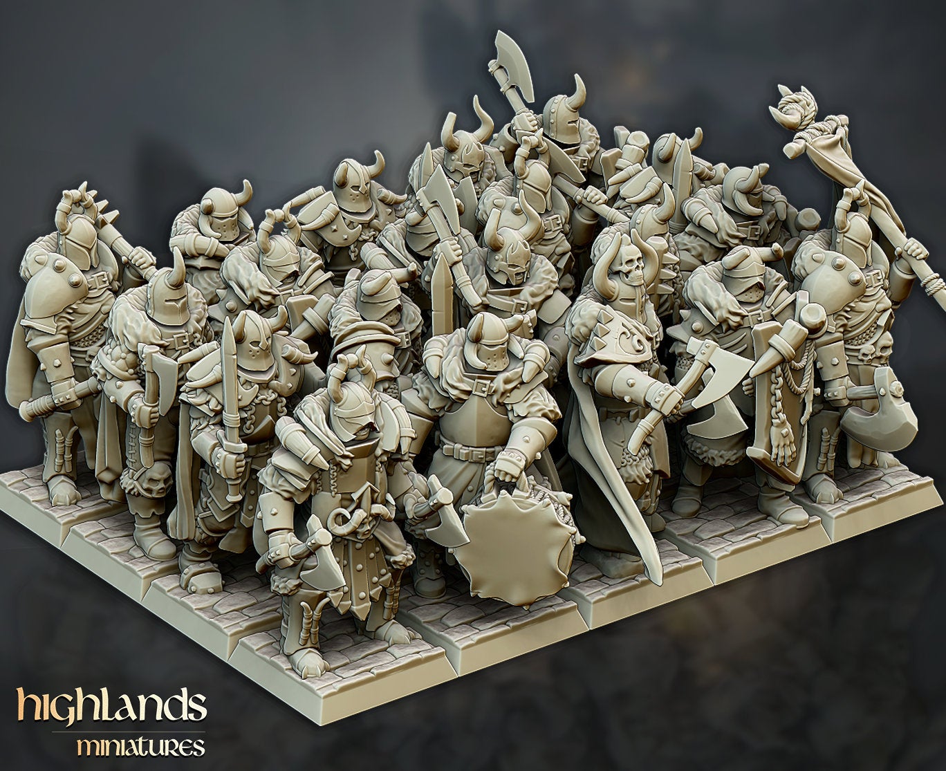 These are resin 3D printed Varyags Warriors by Highlands Miniatures. They are available as a command group, a core set of 10 models, or a unit which combines the core and command group for a total of 13 models.